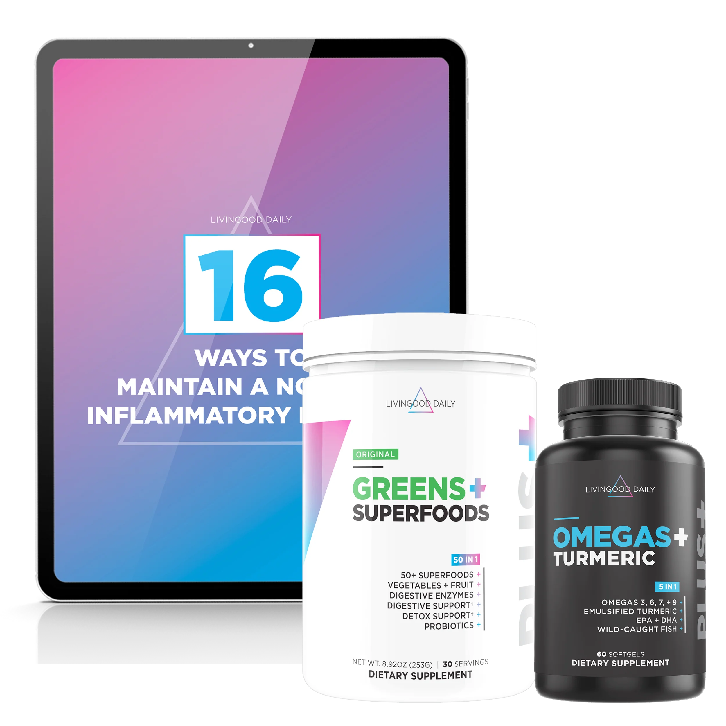 Carefully selected supplements to support hydration, gut health, inflammation balance, and everyday wellness